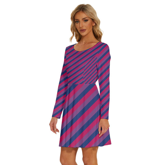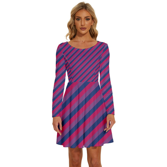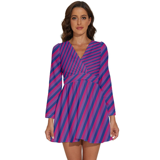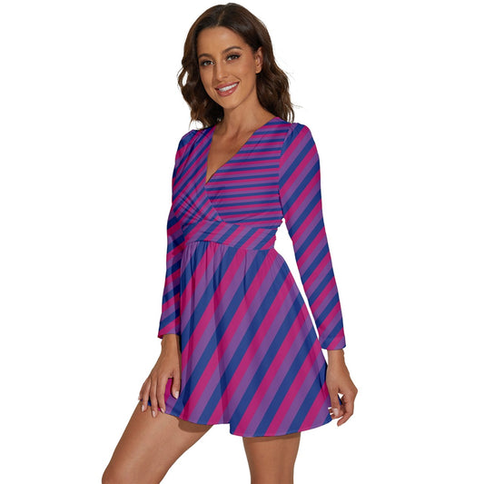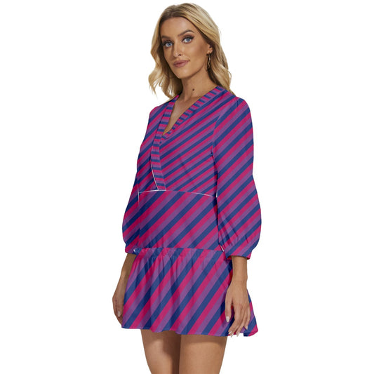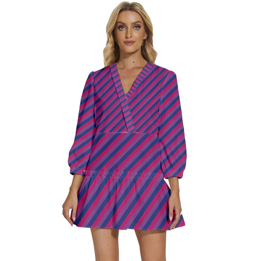 Bisexual Pride Women V-Neck Long Sleeve Ruffle Dress