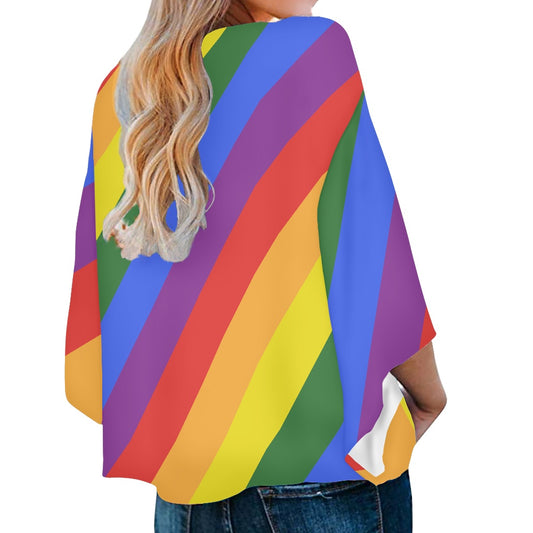 Rainbow V-Neck Tie Front Chiffon Top by Luxtrini