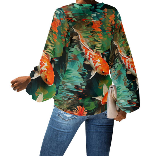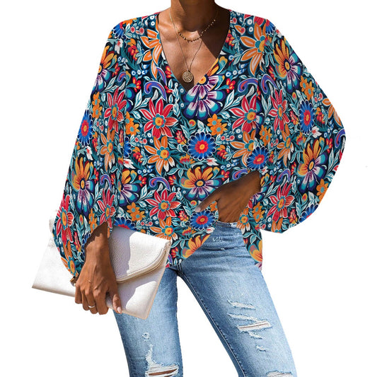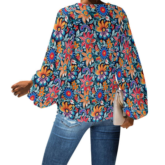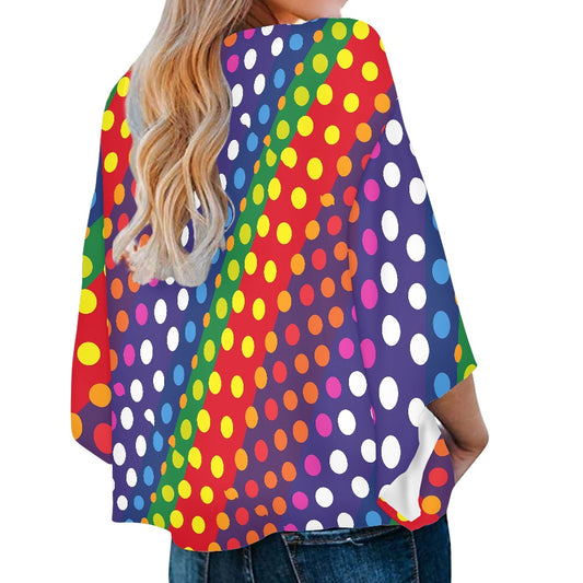 LGBTQ-Friendly Rainbow Polka Dot V-Neck Puff Sleeve Chiffon Top by Luxtrini