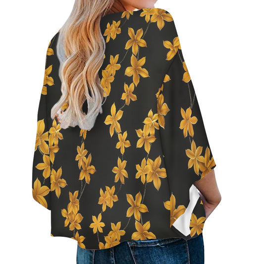 Golden Puakenikeni Chiffon Top - Elegant, Comfortable & Versatile for Every Occasion