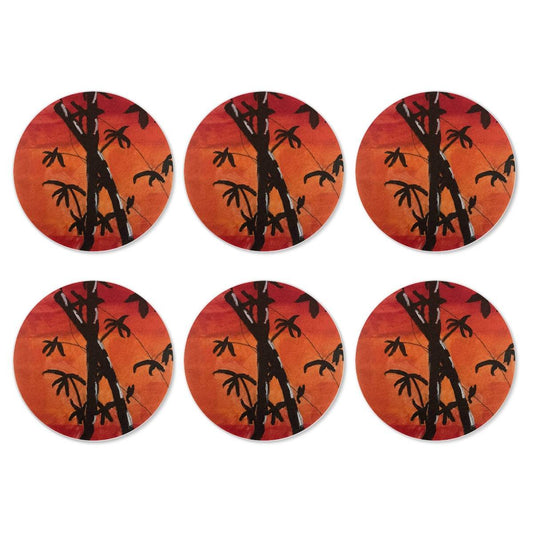 6 Pieces Cup Mats Set - Coasters - Bamboo at Sunset