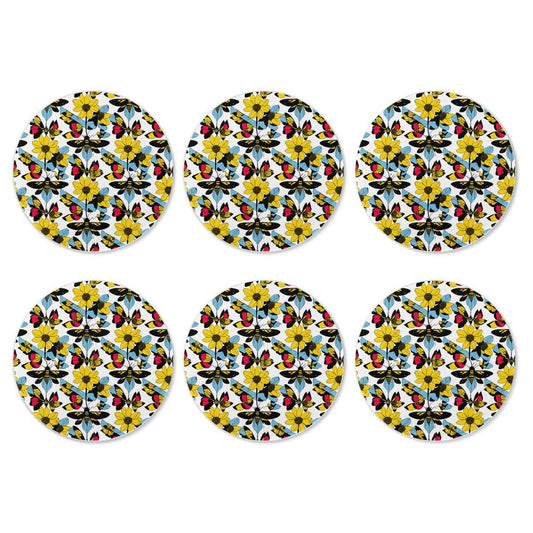 6 Pieces Cup Mats Set - Coasters - Bees and Sunflowers