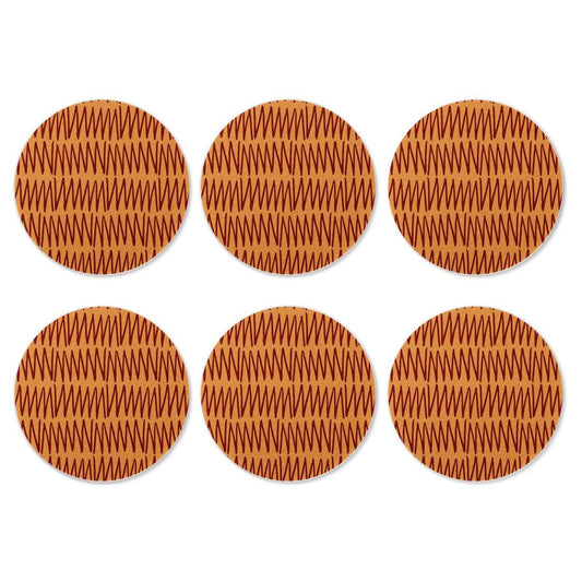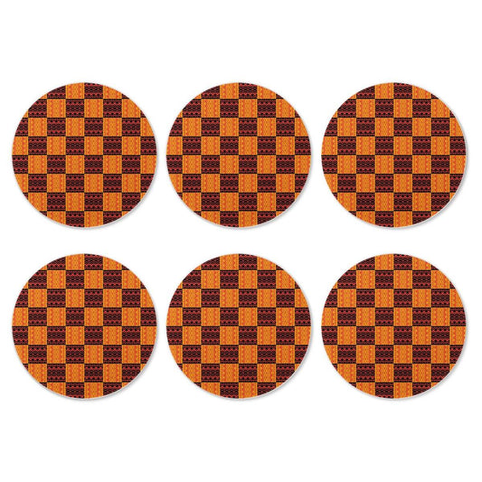 6 Pieces Cup Mats Set - Coasters - African - Ethnic - Mudcloth - Orange