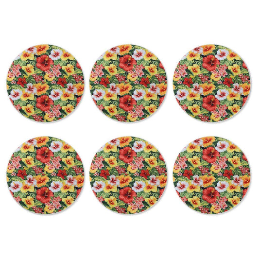 6 Pieces Cup Mats Set - Coasters - Hibiscus