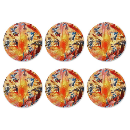 6 Pieces Cup Mats Set - Coasters - Golden Peace Lily