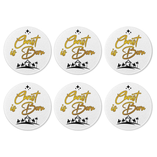 6 Pieces Cup Mats Set - Coasters - Christ is Born | White