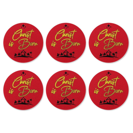 6 Pieces Cup Mats Set - Coasters - Christ is Born | Red