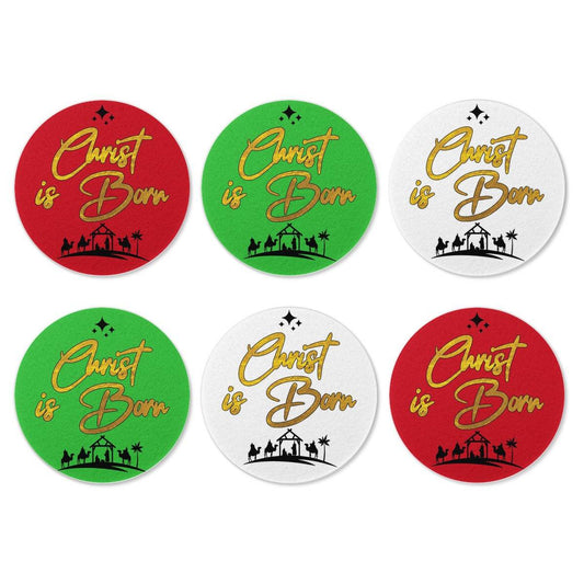 6 Pieces Cup Mats Set - Coasters - Christ is Born | Red - Green - White