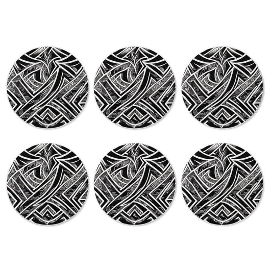 6 Pieces Cup Mats Set - Coasters - Black and White Polynesian
