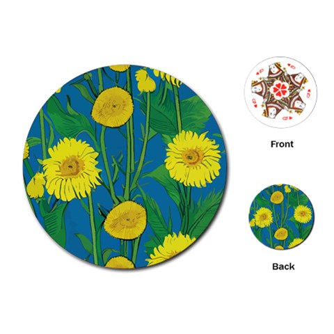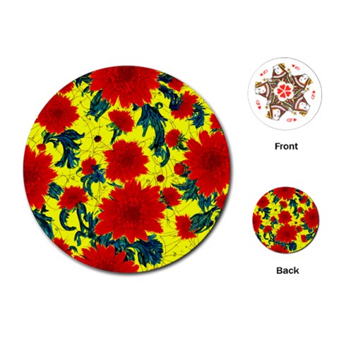 Red Flowers on Yellow Playing Cards Single Design (Round)