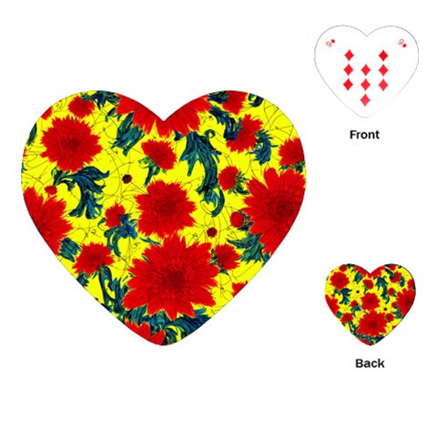 Red Flowers on Yellow Playing Cards Single Design (Heart)