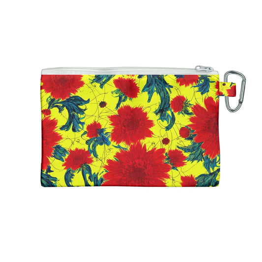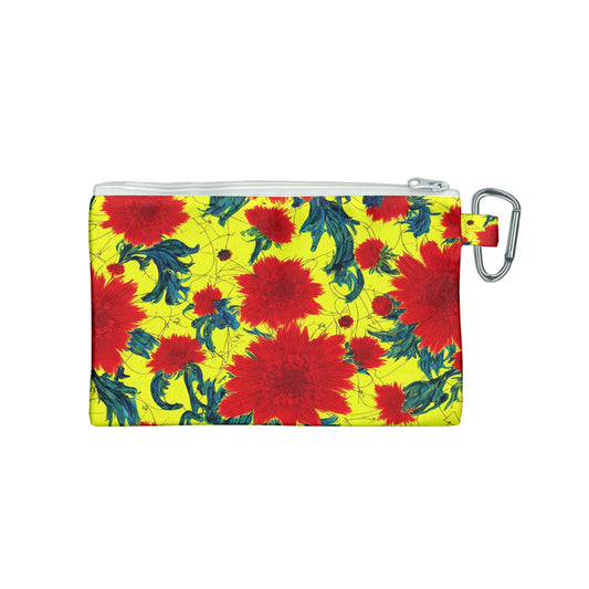 Red Flowers on Yellow Canvas Cosmetic Bag (Small)