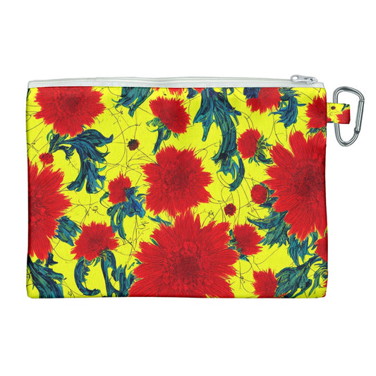 Red Flowers on Yellow Canvas Cosmetic Bag (Medium)