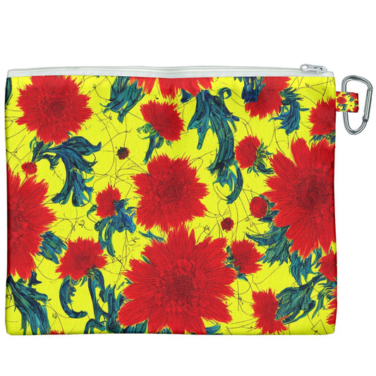 Red Flowers on Yellow Canvas Cosmetic Bag (XXL)