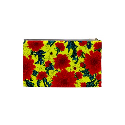 Red Flowers on Yellow Cosmetic Bag (Small)