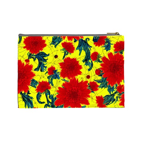 Red Flowers on Yellow Cosmetic Bag (Large)