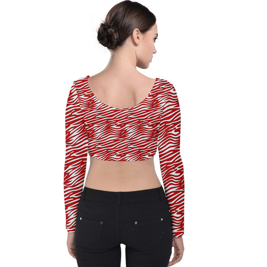 Velvet Long Sleeve Crop Top Red Stripes