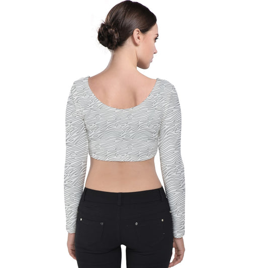 Velvet Long Sleeve Crop Top White Stripes