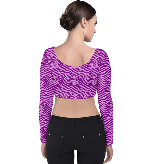 Velvet Long Sleeve Crop Top Pink and Purple Stripes