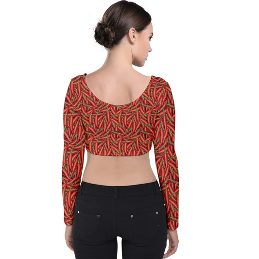 Velvet Long Sleeve Crop Top Chili Pepper