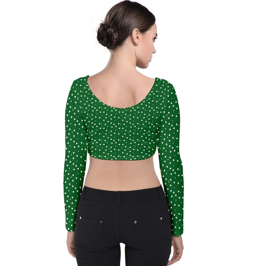 Velvet Long Sleeve Crop Top Green Dots