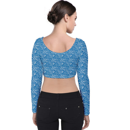 Velvet Long Sleeve Crop Top Blue Wind