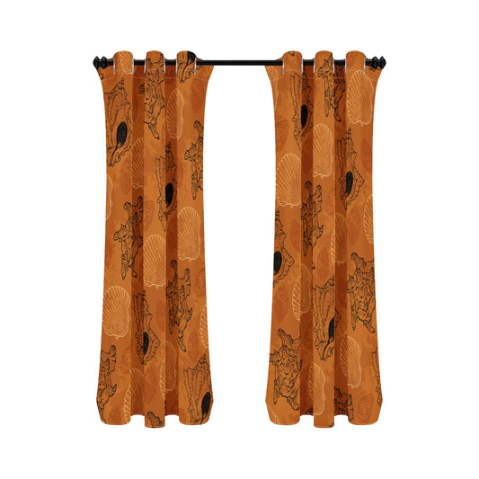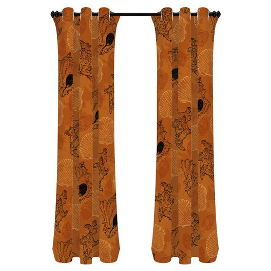 SeaShell Ocean in Orange Long Curtains | Home Decor