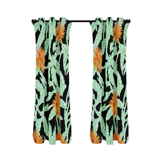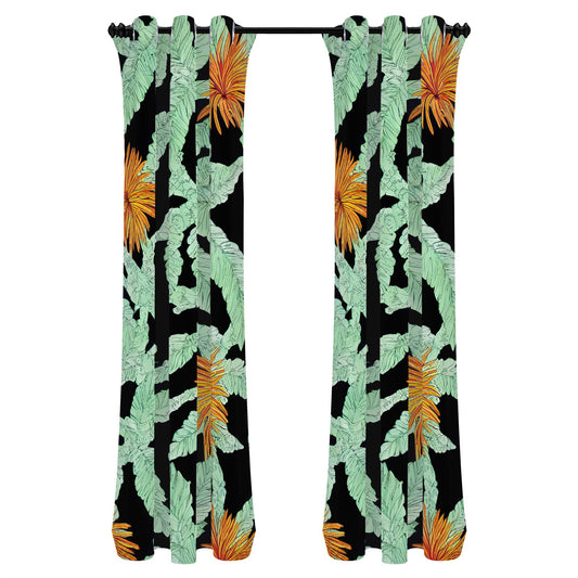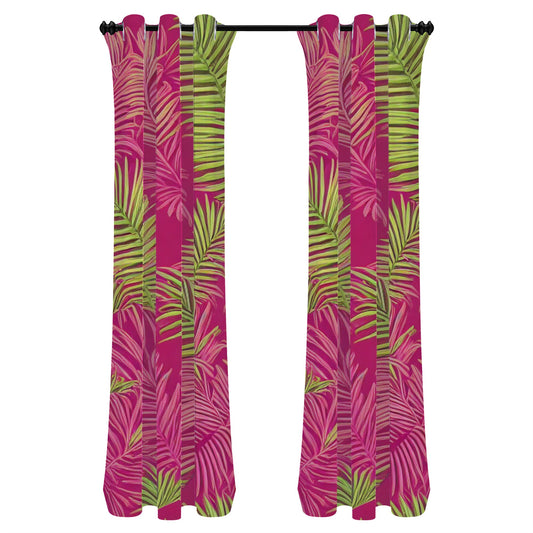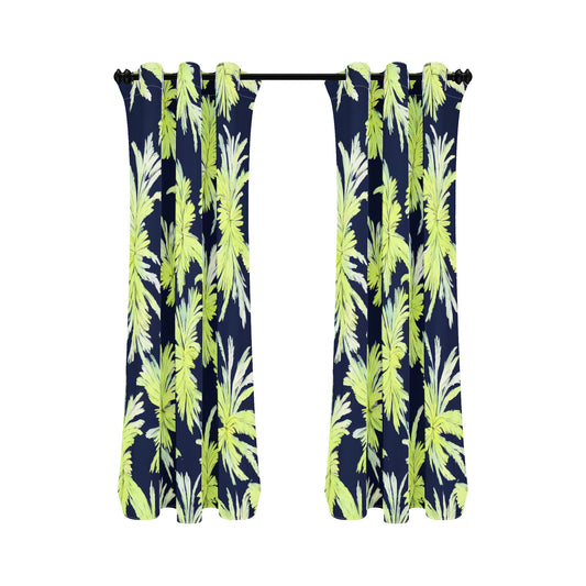 Palm Fronds - Lime Green and Black Long Curtains | Home Decor