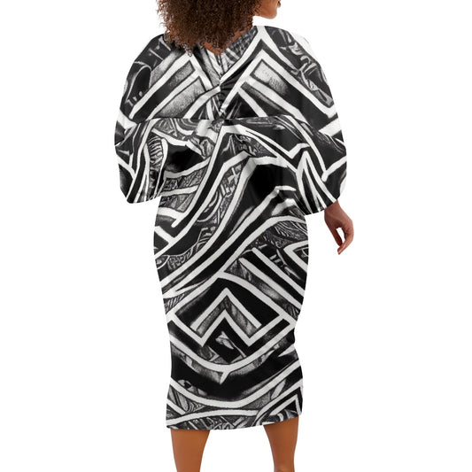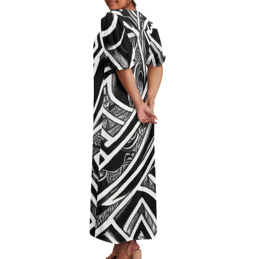 Polynesian Puff Sleeve Dress up to 6XL