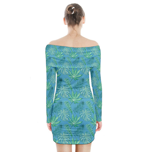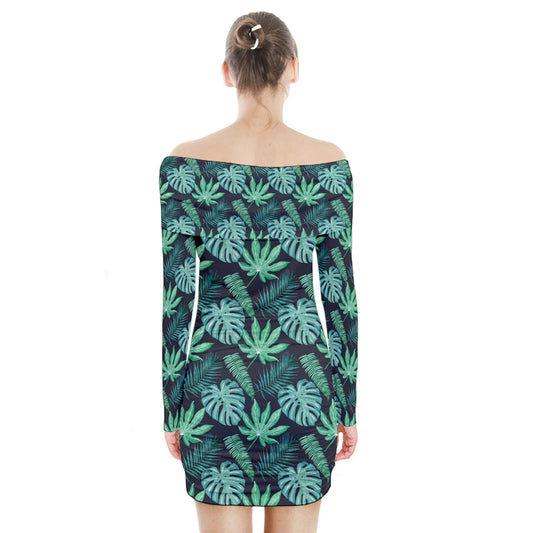 Monstera Fern #5 Long Sleeve Off Shoulder Dress
