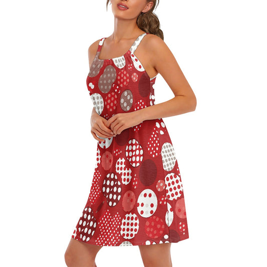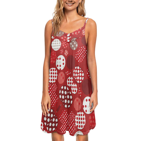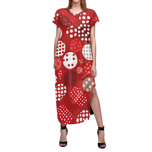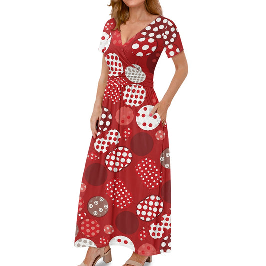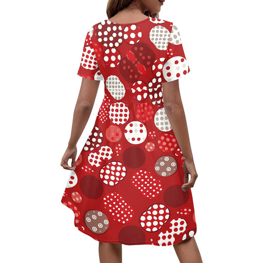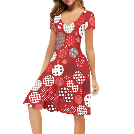 Red Polka Dot Short Sleeve V-Neck Ladies dress