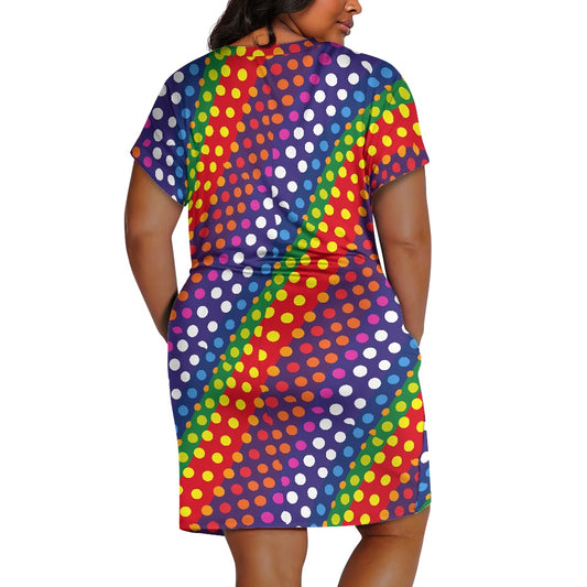 LGBTQ-Friendly Rainbow Polka Dot Relaxed Fit V-Neck Dress with Short Sleeves - Perfect Everyday Wear for Women by Luxtrini