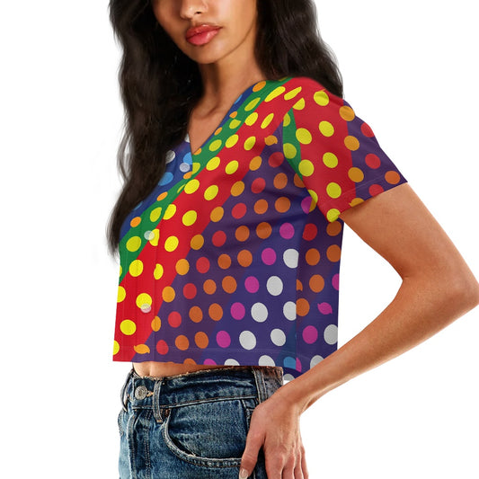 LGBTQ-Friendly Rainbow Polka Dot Tight Cropped Navel-Baring T-shirt by Luxtrini