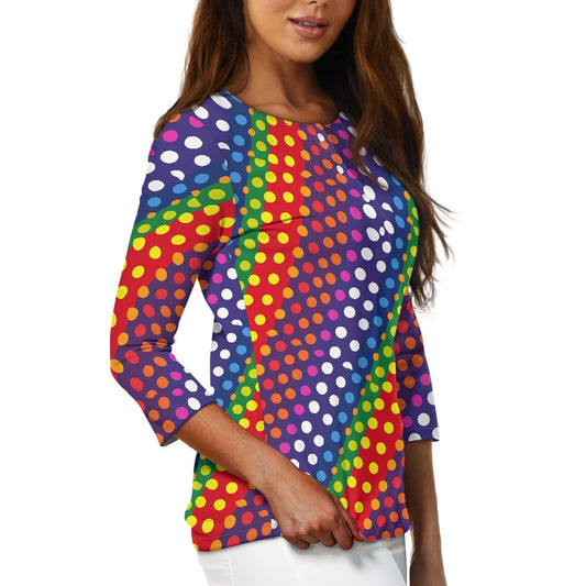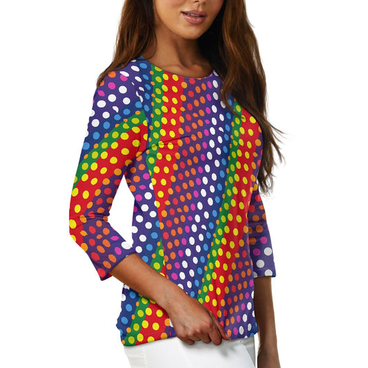LGBTQ-Friendly Rainbow Polka Dot Women's Three Quarter Sleeve Top by Luxtrini