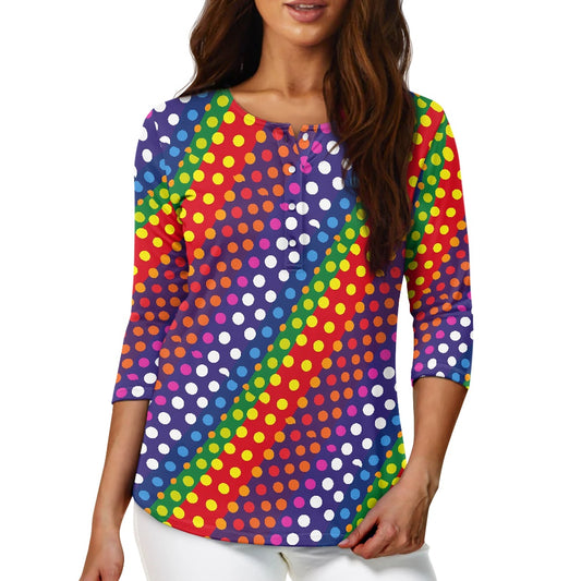 LGBTQ-Friendly Rainbow Polka Dot Women's Three Quarter Sleeve Top(with buttons) by Luxtrini