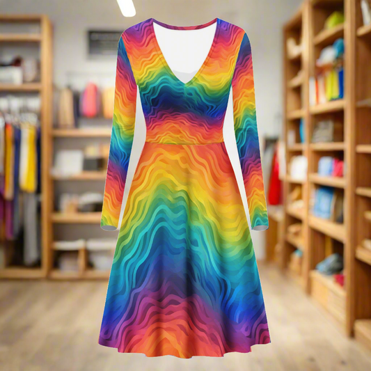Rainbow Pride - LGBTQ Women Long Sleeve Ruffle Dress