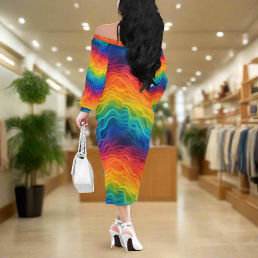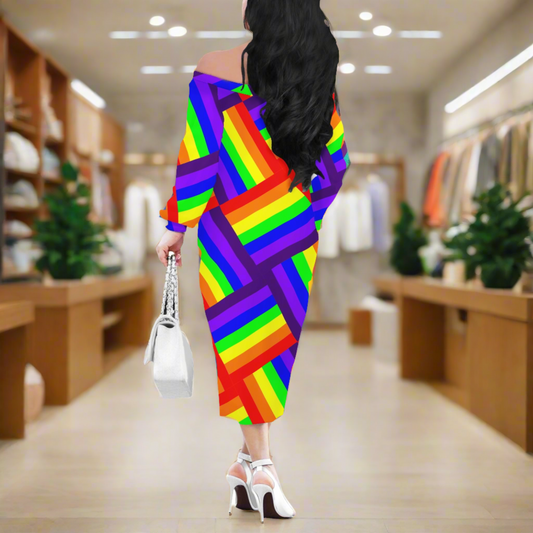 Rainbow Pride - LGBTQ Women Long Sleeve Off-shoulder Dress