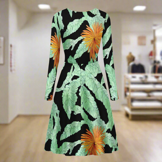 Puakenikeni Women Scoop[ Neck Long Sleeve Ruffle Dress