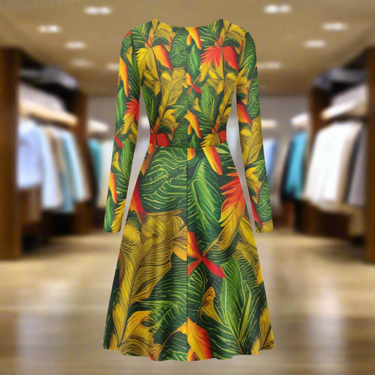 Rainbow Weave Women Long Sleeve Ruffle Dress