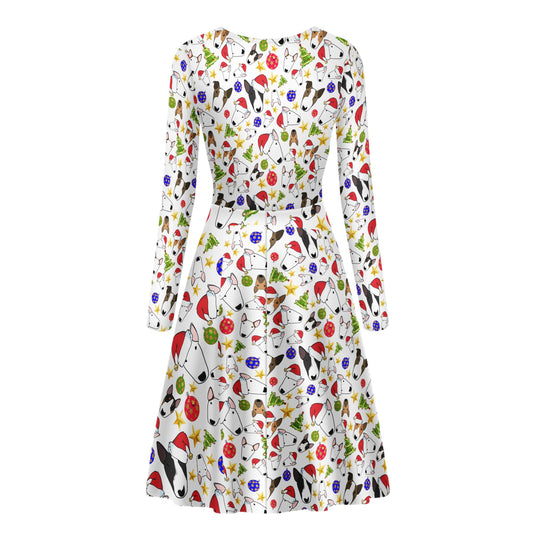Santa Bully 2021 white Women V-Neck Long Sleeve Ruffle Dress