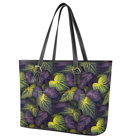 Luxtrini Iridescent Syngonium: Purple and Yellow Leather Tote Bags