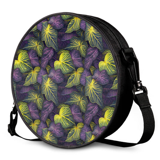 Luxtrini Iridescent Syngonium: Purple and Yellow Round Satchel Bags