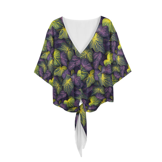 Luxtrini Iridescent Syngonium: Purple and Yellow Women V-neck Streamers Blouse