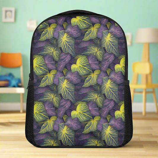 Luxtrini Iridescent Syngonium: Purple and Yellow 12 Inch Toddler Felt Backpack