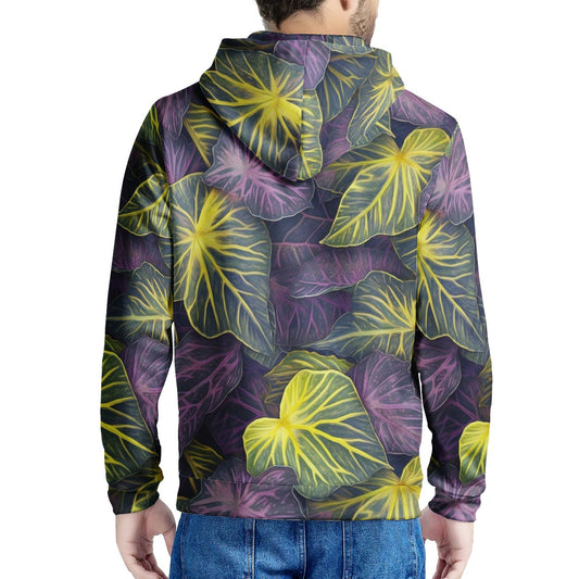 Luxtrini Iridescent Syngonium: Purple and Yellow Men's All Over Print Hoodie