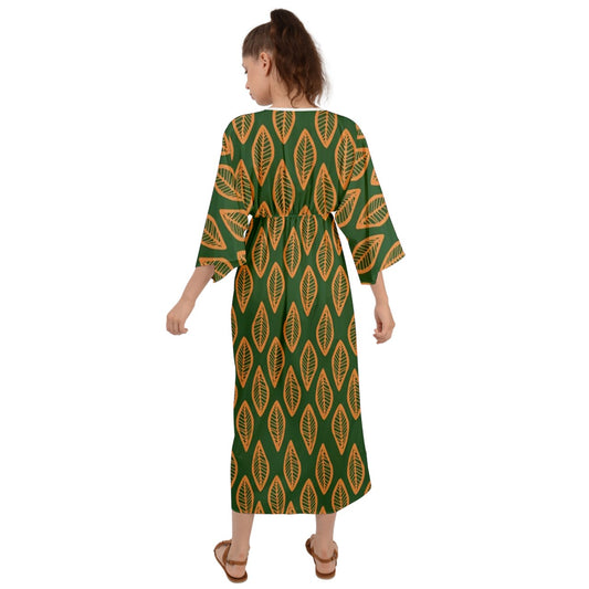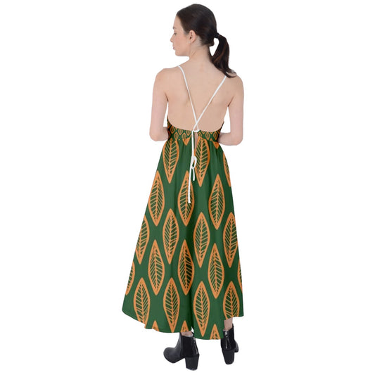 African Ethnic Orange Green Grecian Style Maxi Dress