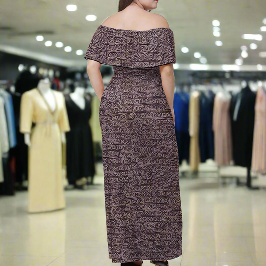 African Ethnic MudCloth Women Off Shoulder Maxi Dress - Sizes up to 7XL