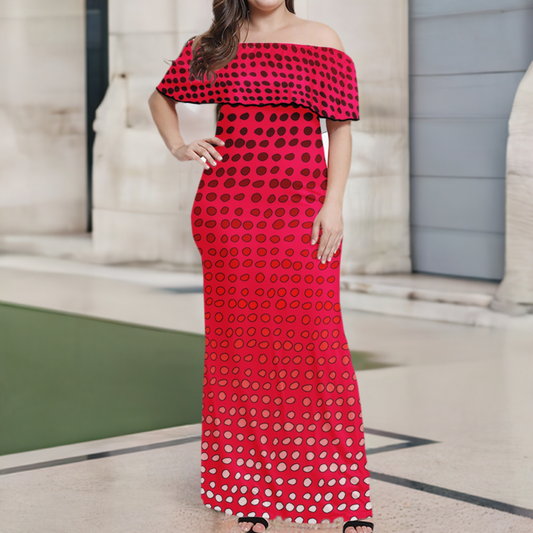 African Ethnic MudCloth Red Women Off Shoulder Maxi Dress - Sizes up to 7XL