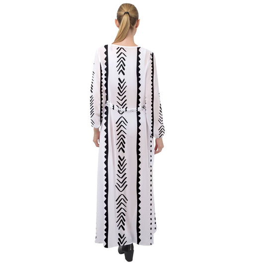 African | Ethnic | Mudcloth | #20 Button Up Chiffon Maxi Dress
