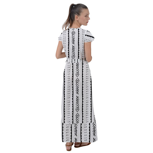 African | Ethnic | Mudcloth | #20 Flutter Sleeve Maxi Dress